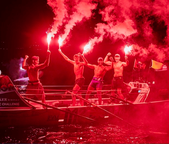 The four men rowed in shifts throughout the day and night in a self-supporting 9 metre x 2 metre boat. Along the way, they survived a shark encounter, strong winds and powerful waves – the largest of which struck their boat in the pitch black, resulting in a broken oar and some lost kit.