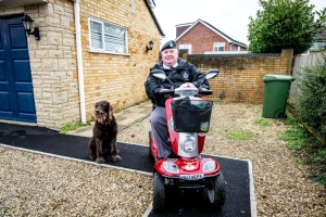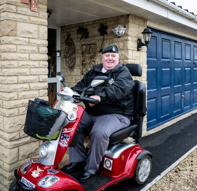 “The new scooter has improved my mental health and physical wellbeing. I am now able to get out with my family and start to enjoy life again. I go to the shops with my wife, taking my dog, Monty with me. I can pop out for a coffee and meet my friends locally. I would like to thank the Army Benevolent Fund for your support in getting this scooter. It has really revolutionised my life.”