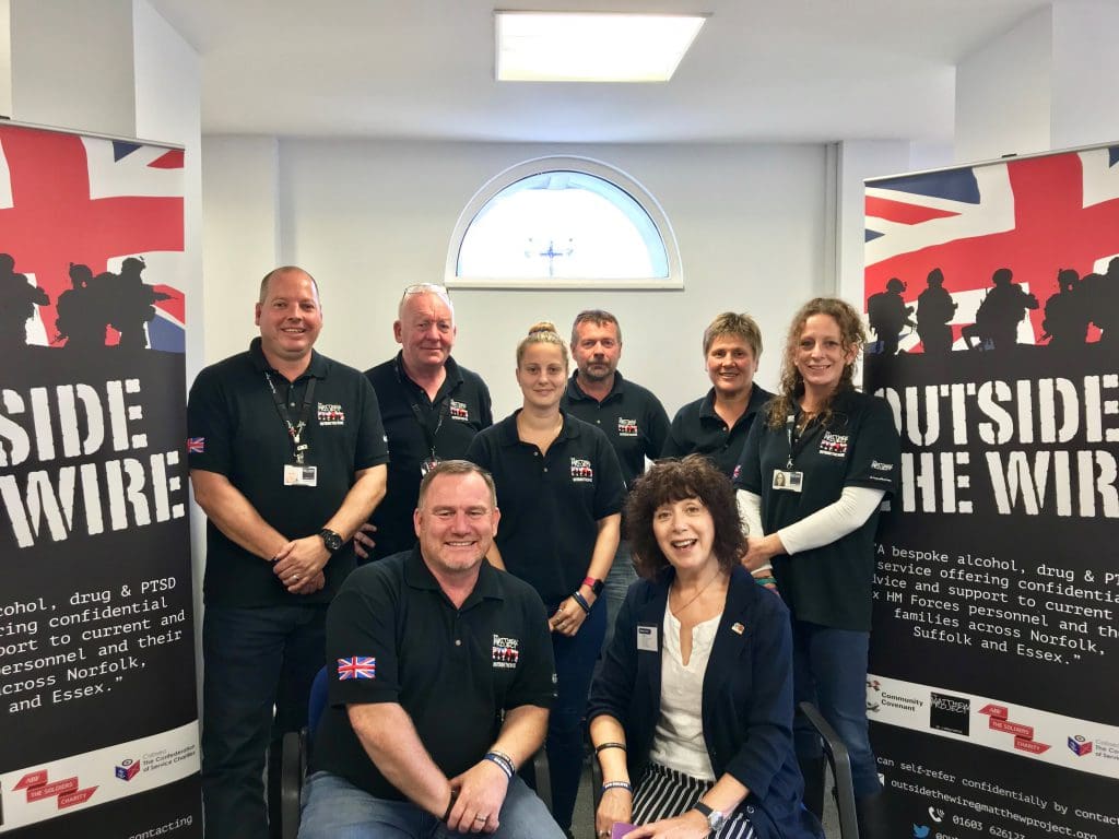 In 2013, the Matthew Project launched an Armed Forces support service named Outside the Wire, which provides specialist one-to-one support to veterans, current serving personnel, and family members affected by substance misuse and PTSD across Norfolk, Suffolk, and Essex. The service is run by veterans, for veterans – all Outside the Wire staff are either veterans themselves or have been brought up in a military environment. The majority of their work involves outreach support – reaching people in their own homes and communities. In addition, they offer activities, workshops, and group sessions across the region.